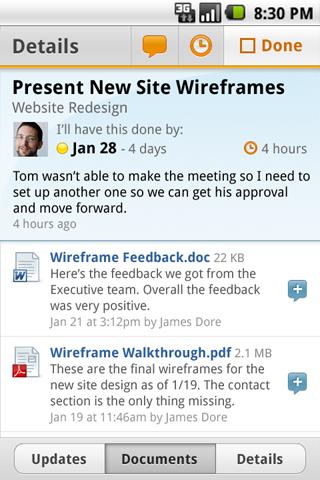 * View detailed information about your tasks, including attached documents