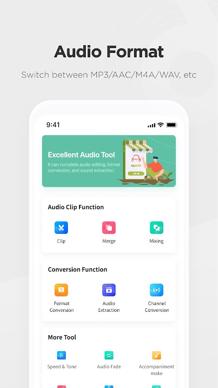 Audio Editor Converter یک نرم افزار حرفه ای پردازش صدا است که از تبدیل فرمت صدا، ویرایش صدا، ادغام و استخراج صدا پشتیبانی می کند. پس از وارد کردن فایلهای صوتی، میتوانید برش و سایر عملیاتهای صوتی را انجام دهید و در نهایت میتوانید با یک کلیک مطابق با ایدهتان فرمت صوتی مورد نیاز خود را صادر کنید! این برنامه از MP3/AAC/M4A/WAV و دیگر فرمت های صوتی اصلی پشتیبانی می کند. این مناسب برای کار و قدرتمند است. این دستیار دست راست شما برای ویرایش صدا است. بیا دانلود کن و تجربه کن!