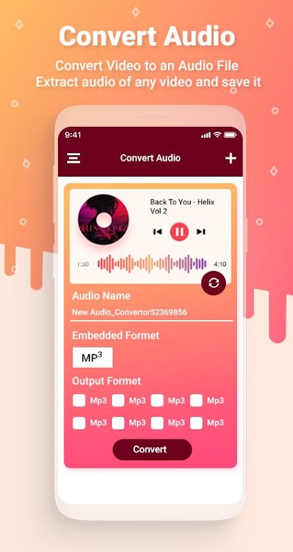 The most powerful and complete Audio Editor! It has all the features you would ever want in an Audio Editor!! Trim Audio – MP3 Cutter for Ringtones, Merge two or more audio files, Mix Audio Clips, Change Metadata fields like Art Cover, Music Album name etc, Convert from one format to another - MP3, AAC, WAV … and the list of app features goes on!!