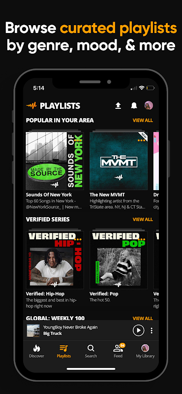 بهترین موسیقی جدید را استریم و دانلود کنید، موسیقی را بصورت آفلاین و بدون داده پخش کنید، و به MP3 های خود گوش دهید! موسیقی را از دسته های برتر مانند Hip-Hop، Rap، R&B، EDM، Afropop و Reggae در دستگاه مرور کنید. برنامه موسیقی Audiomack. آهنگ ها را دانلود کنید و حتی به صورت آفلاین گوش دهید، بدون استفاده از اینترنت خود، یا به مجموعه MP3 شخصی خود گوش دهید! Audiomack دسترسی استریم و دانلود به جدیدترین و داغترین آهنگها را مستقیماً در دستان شما فراهم میکند. ویژگی دانلود موسیقی ما به شما امکان می دهد آهنگ های مورد علاقه خود را به صورت آفلاین پخش کنید، و بخش اختصاصی "Trending" ما بهترین آلبوم ها و آهنگ هایی را که در حال حاضر داغ هستند را به شما نشان می دهد. به علاوه، میتوانید به تمام فایلهای MP3 محلی، WAV، M4A، AAC و سایر فایلهای محلی مستقیماً از برنامه گوش دهید. ویژگی های کلیدی • موسیقی و میکس نوارهای جدید یا پرطرفدار را پیدا و پخش کنید. اولین نفری از دوستان خود باشید که از آینده مطلع می شوند. • آهنگ ها و آلبوم ها را برای گوش دادن آفلاین و بدون داده دانلود کنید. • گوش دادن و پخش جریانی نامحدود - به همان اندازه که می خواهید موسیقی هیپ هاپ، آفروبیت، الکترونیک، رگی و رقص هال را پخش کنید. • آهنگ ها، آلبوم ها، و لیست های پخش مورد علاقه را انتخاب کنید و به راحتی مجموعه مورد علاقه خود را جستجو، مرور و به هم بزنید. • به موسیقی محلی مانند MP3، AAC، M4A، WAV و فایل های دیگر از پخش کننده فایل محلی گوش دهید. • فهرستهای پخش انتخابشده را بر اساس حالت، ژانر و موارد دیگر مرور کنید. • لیست پخش نامحدودی از خودتان ایجاد کنید. • هنرمندان، تولیدکنندگان و tastemaker های مورد علاقه خود را دنبال کنید، از جمله 21 Savage، Young Thug، Future، و موارد دیگر. • بدون آگهی فقط با 4.99 دلار در ماه جریان و دانلود آهنگ از هنرمندان برتر • هیپ هاپ، رپ، و تراپ از Migos, 21 Savage, Young Thug, Gunna, Juice WRLD، Chance the Rapper، 6IX9INE، Future، 2 Chainz، Kodak Black، Lil Baby، Ynw Melly، Lil Durk، Moneybagg Yo، Famous Dex، A Boogie Wit Da Hoodie، Hoodrich Pablo Juan، Flipp Dinero، Youngeen Ace و موارد دیگر • آفروبیت، آفریقا-کارائیب، رگی، سالن رقص، و سوکا از Shatta Wale، Ade Gold، Chronixx، DJ Frass، Kranium و موارد دیگر • لاتین، urbano، تله لاتین، musica urbana، reggaeton، و dembow از Quimico Ultra Mega, La Insuperable, Melymel, Musicologo, Don Miguelo, Juhn, Mark B, Bad Bunny • R&B and soul از August Alsina, PnB Rock, Brent Faiyaz, SiR ، آلینا باراز، لوید، و بیشتر • الکترونیک، EDM، هاوس، و باس از Diplo، Mad Decent، Whethan، NGHTMRE، Poppy، Cheat Codes، Krewellla، Snails، Lowly Palace، Dim Mak، Fool's Gold, Trap Nation. از Audiomack در تمامی پلتفرمها، از جمله Wear OS و Android Auto لذت ببرید . و موارد دیگر استفاده از اپلیکیشن Audiomack و قابلیت دانلود می باشد مشروط به توافق شما با خط مشی رازداری ما/TOS. خط مشی رازداری: http://www.audiomack.com/privacy-policy TOS: http://www.audiomack.com/about/terms-of-service