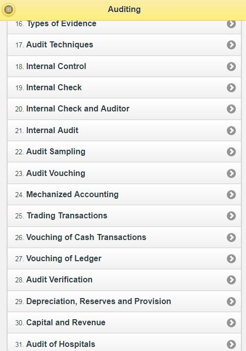 this application provides stage stages in learning Auditing, thus making the user easy to understand.