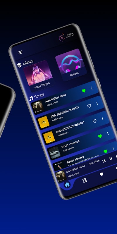 Another feature of Aura is its minimalist and easy-to-use interface. The app's simple design makes it easy for users to navigate through their music library, playlists, and favorite songs. Additionally, Aura also includes a search feature that enables users to quickly find specific MP3 songs in their library.