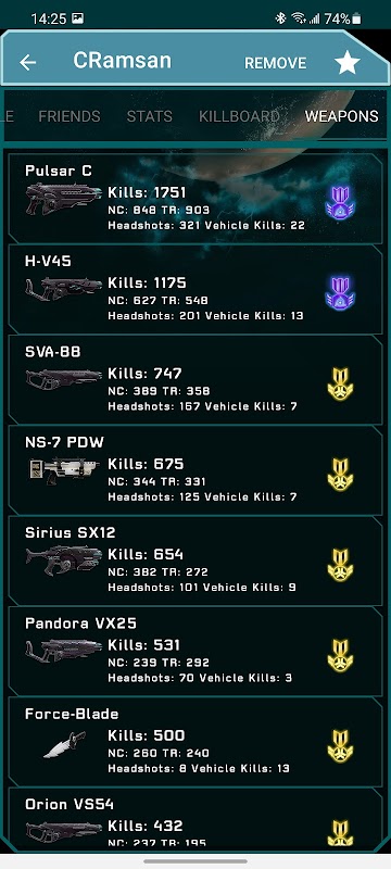 تمام داده ها توسط SOE از طریق https://census.soe.com/ ارائه
