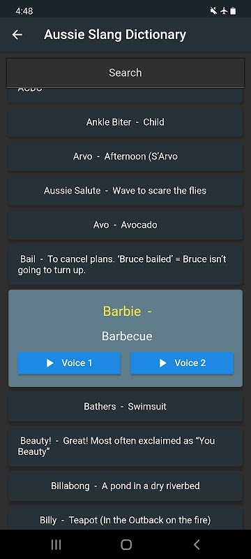 G'day، زبانشناس آینده استرالیایی! وقت آن است که با Aussie Slang Master خود را در دنیای پر جنب و جوش و رنگارنگ زبان عامیانه Aussie غوطه ور کنید، برنامه برتر برای یادگیری زبان عامیانه استرالیایی به روش سرگرم کننده! چه برای ماجراجویی پا به خاک استرالیا گذاشته باشید، چه مشتاق درک همسران استرالیایی خود باشید یا فقط عاشق فرهنگ استرالیایی باشید، برنامه ما بهترین همسر برای شماست.