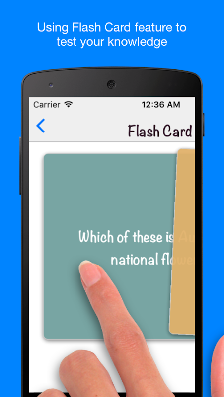 این نرم افزار استفاده می شود برای مطالعه و شما آماده شدن برای "تست تابعیت استرالیا". آزمون شهروندی برای ارزیابی اینکه آیا شما دانش کافی از استرالیا و مسئولیت ها و امتیازات شهروندی استرالیا طراحی شده است. انگلیسی زبان ملی ما است. ارتباط به زبان انگلیسی کمک می کند تا شما را به بازی نقش فعال تر در جامعه استرالیا. این کمک می کند تا شما را به استفاده کامل از آموزش، اشتغال و فرصت های دیگر استرالیا را ارائه کرده است. آزمون واقعی شامل بیست و سوالات چند گزینه ای. شما می توانید این نرم افزار را به تمرین پاسخ همان سوال چند گزینه ای است که ممکن است در آزمون شهروندی واقعی به نظر می رسد، و یا به سادگی درک بیشتر در مورد استرالیا استفاده کنید. نگه دارید عمل می کند کامل!