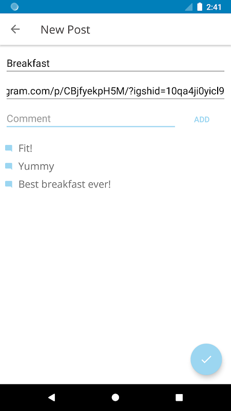 • با درج پیوندی که از اینستاگرام ، توییتر یا فیس بوک کپی شده است ، پستی را که ساخته اید اضافه کنید