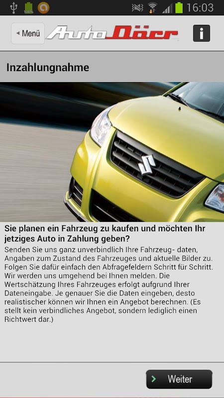 Always up to date with the car dried Suzuki Odenwald Android app.