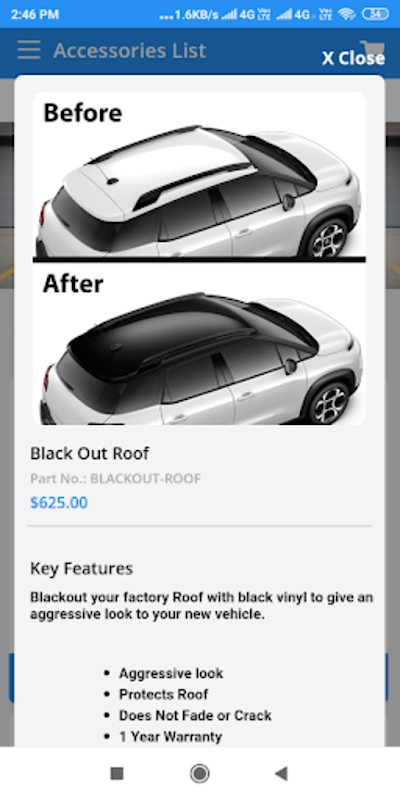 مشتریان می توانند سال را جستجو کنند، مدل بسازند و لوازم جانبی مخصوص خودرو را ببینند.