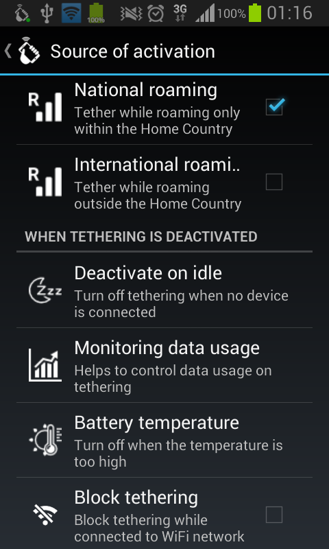 ✔ فعال سازی اتصال اینترنت در اتصال USB یا شارژر AC