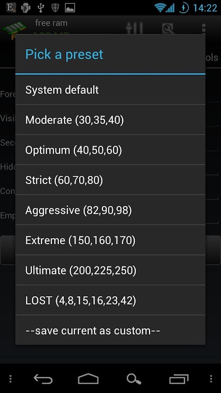 Forget task killers! AutoKiller Memory Optimizer is not a regular task manager, it is an award winner memory (minfree) tweaker, it fine tunes android systems inner memory manager to keep your device fast over time. As a side effect it also lowers battery consumption. Also includes a manual process/service manager and a DashClock extension.