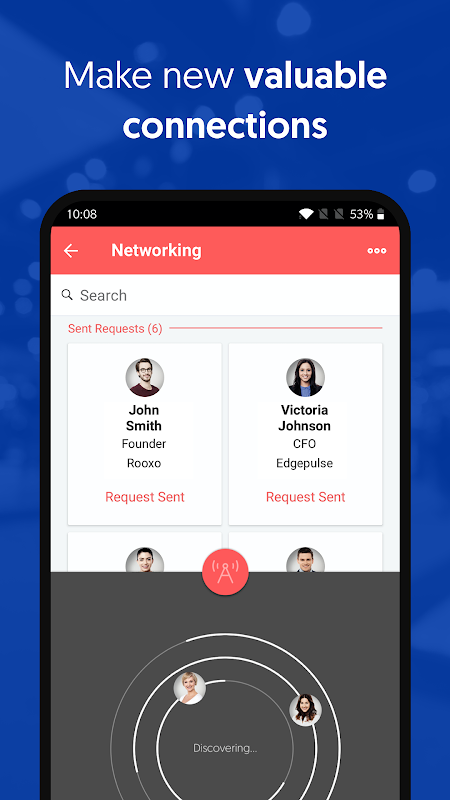 - شبکه با شرکت کنندگان دیگر بر اساس منافع و نقش ها. به راحتی با دیگران از طریق قابلیت چت ارتباط برقرار کنید.