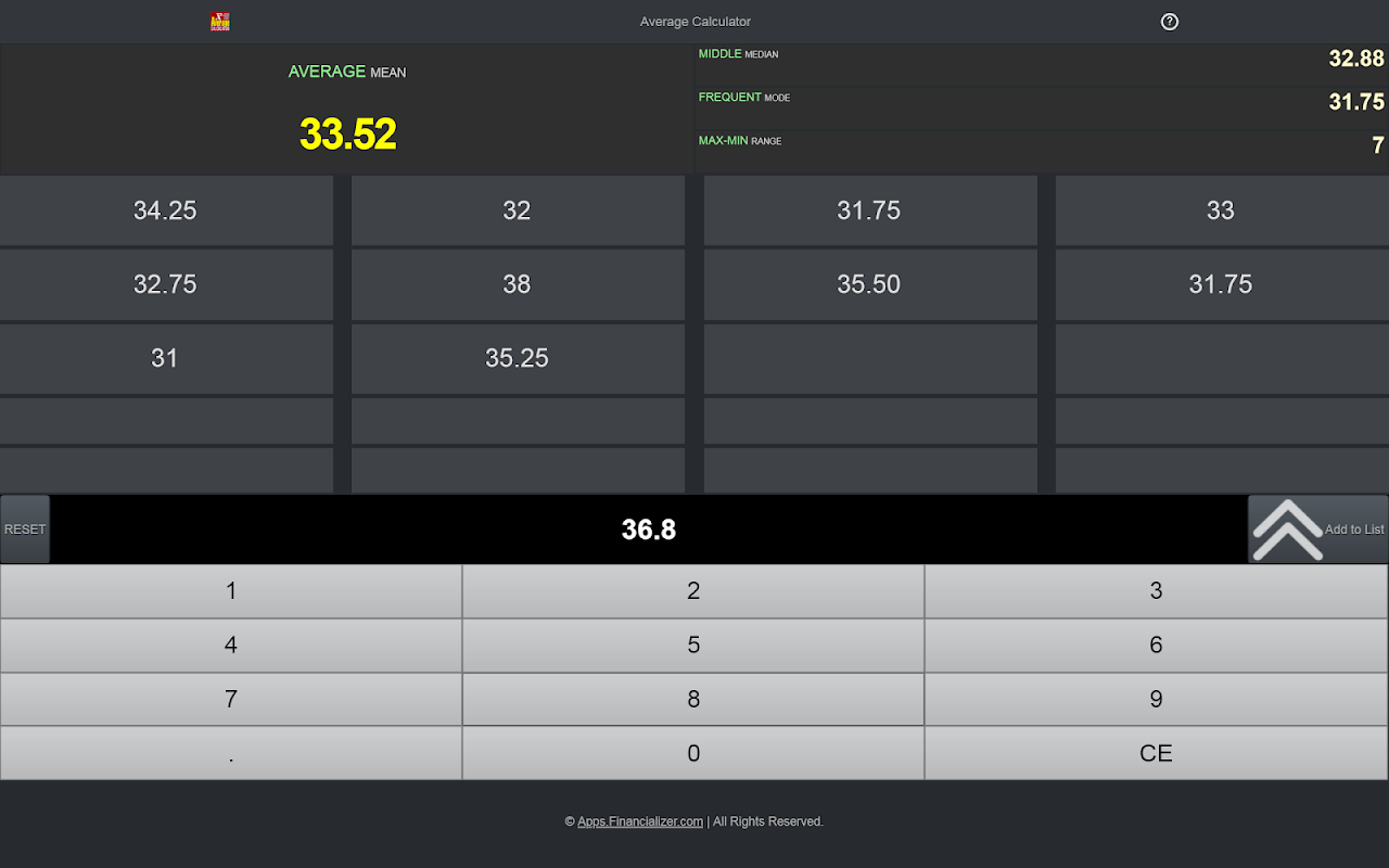 فقط یک سری اعداد را جمع کنید و میانگین ها را در زمان واقعی به روز کنید. میانگین (میانگین)، وسط (میانگین)، مکرر (حالت) و حداکثر حداقل (محدوده).