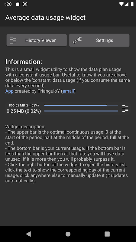 کد منبع در اینجا موجود است: https://github.com/TrianguloY/Average-data-usage-widget