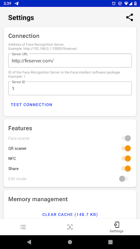 • به اشتراک گذاری پیوندی به کارت اطلاعات کاربر که می تواند در دستگاه دیگری با دسترسی به پایگاه داده چهره باز شود