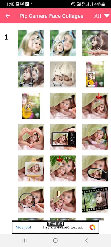 Face Collages And Pip Camera برنامه ای است که برای افزودن کلاژ به عکس های شما طراحی شده است. می توانید حداکثر 9 عکس را به کلاژ اضافه کنید.