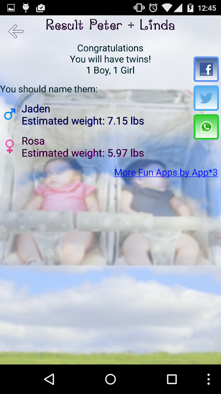 Ask the free Baby Predictor about your future children. It will tell you if you get twins, just one child or even triplets.