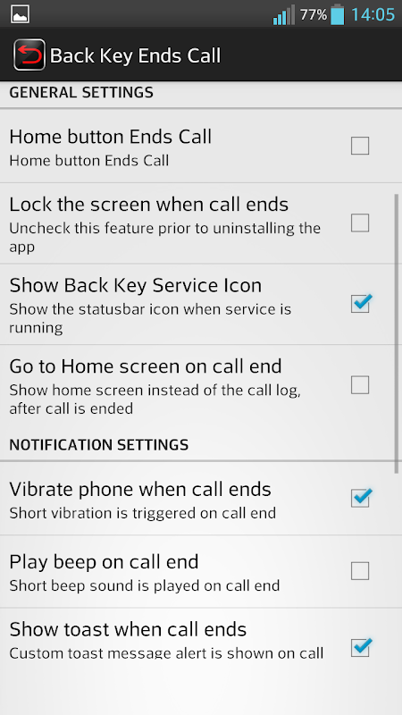 ✓ Vibrate phone when you end call with back key (great for accessibility).