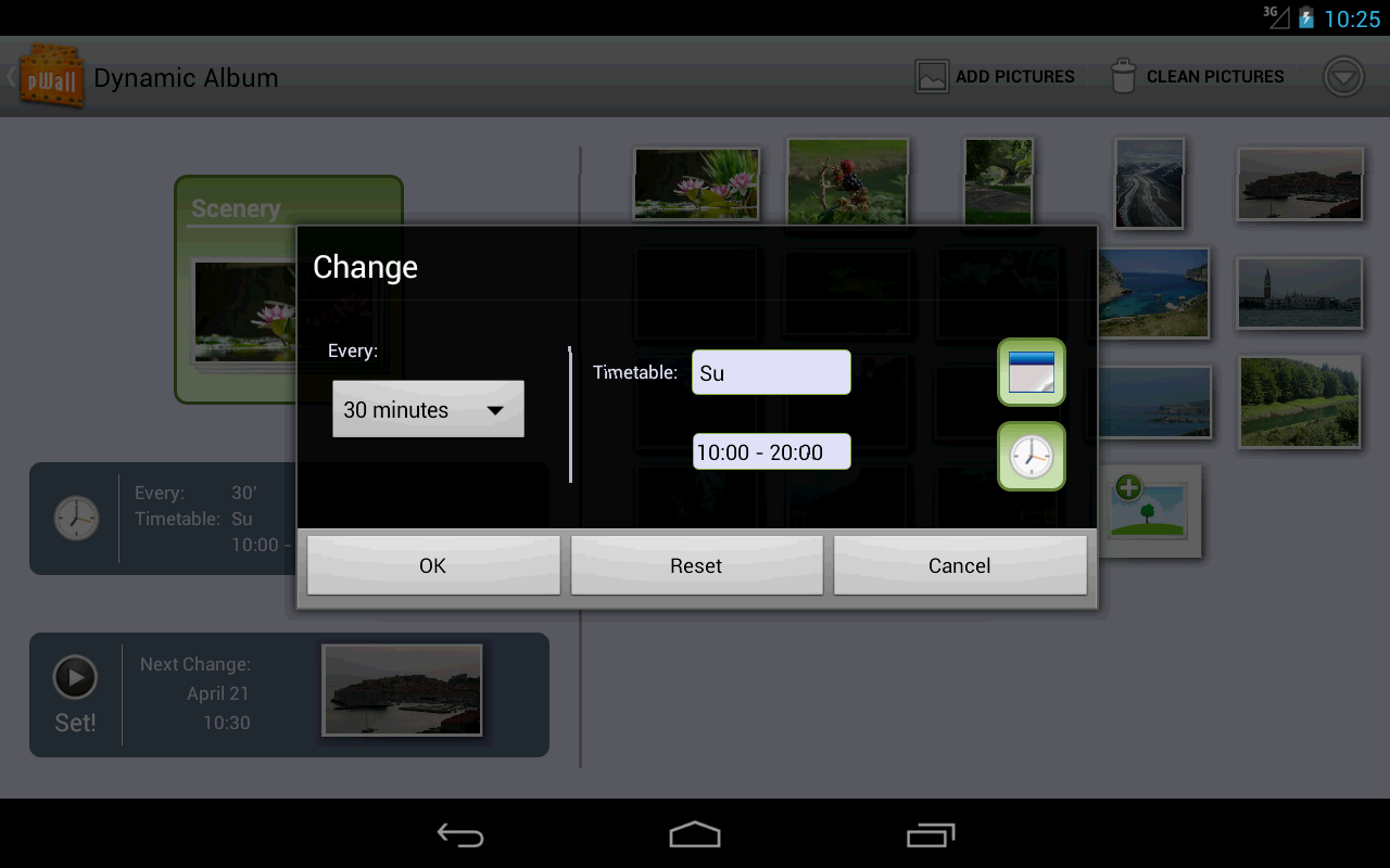 Create a slideshow with your own photos and specify when to set them as wallpaper.