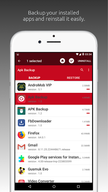 Backuv - پشتیبان گیری و بازیابی برنامه یکی از پشتیبان گیری ساده و بازگرداندن APK است