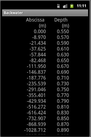 آب پشتی فراهم می کند: عمق طبیعی ، عمق بحرانی ، شیب بحرانی ، حداکثر دبی ، نوع جریان (M1 ، M2 ...) ... و مختصات مشخصات آب در محدوده در نظر گرفته شده.