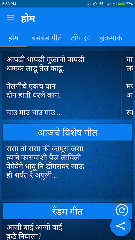 Badbad geete in Marathi is a comprehensive app which lists hundreds of Badbad geete in one single app.