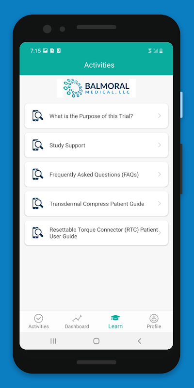 این یک برنامه برای شرکت کنندگانی است که بخشی از مطالعه چند مرکزی برچسب باز تک بازو برای ارزیابی اثربخشی یک دستگاه کمپرس ترانس درمال است. شما از برنامه برای تکمیل فعالیت های مطالعاتی و دسترسی به منابع مطالعه استفاده خواهید کرد. فعالیتها شامل پرسشنامههایی برای گزارش هرگونه سقوط و زمان استفاده از پروتز برای نام بردن از چند مورد است.