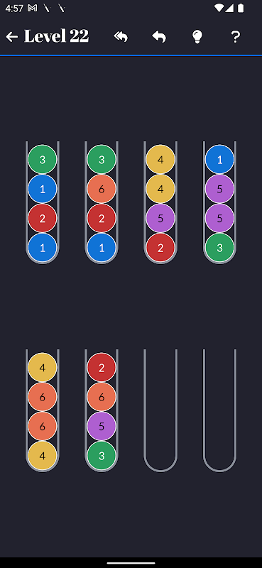 وقتی همه توپ ها بر اساس رنگ مرتب شوند، پازل کامل می شود. به عنوان مثال. همه توپ های قرمز در یک لوله هستند، همه توپ های آبی در یک لوله هستند و غیره.