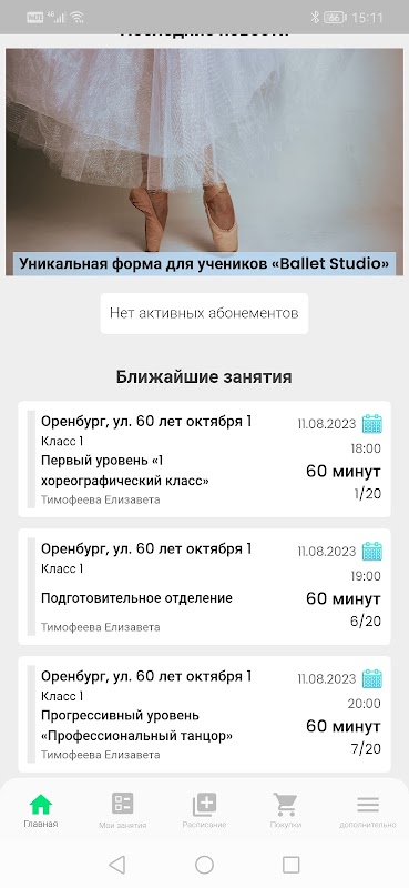 استودیوی باله یک مدرسه رقص کلاسیک به رهبری مارینا تاراسنکو، رقصنده باله تئاتر کمدی موزیکال، طراح رقص اولین باله های کودکان در اورنبورگ، برنده کمک هزینه تحصیلی ریاست جمهوری است.