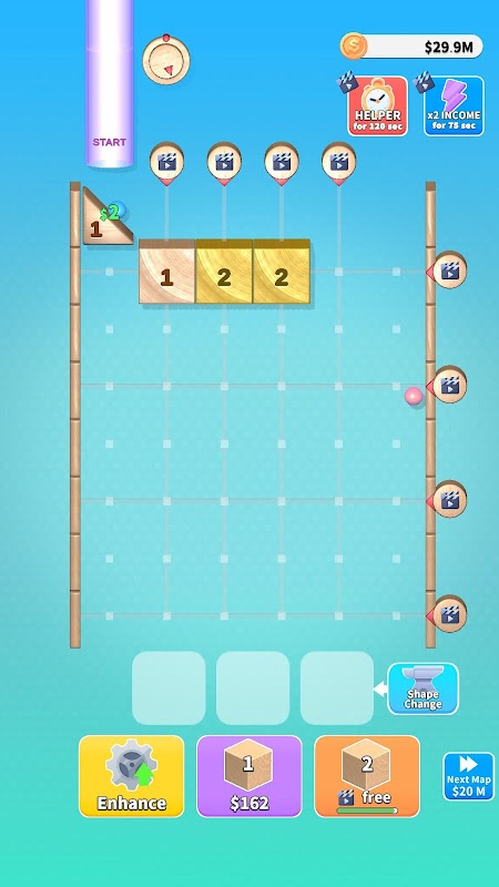 بلوکهای خود را ارتقا دهید تا توپها در حرکت باشند و درآمد حاصل شود.