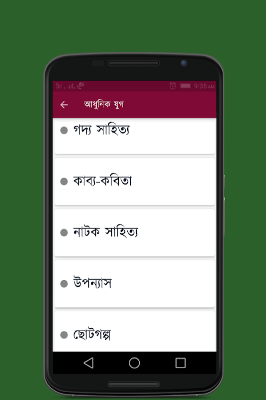سهم رمان ها در تاریخ ادبیات بنگالی آنقدر زیاد است که تاریخ ادبیات بنگالی بدون آن ناقص است. این برنامه شامل پرسش و پاسخ های مختلف مربوط به رمان ها و داستان های کوتاه است که امیدواریم پایگاه داده کاربران را غنی کند.