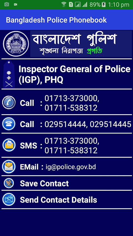 APKPure از تأیید امضای نرمافزار برای اطمینان از دانلودهای بدون ویروس APK Bangladesh Police Phone Book বাংলাদেশ পুলিশ ফোনবুক استفاده میکند.
