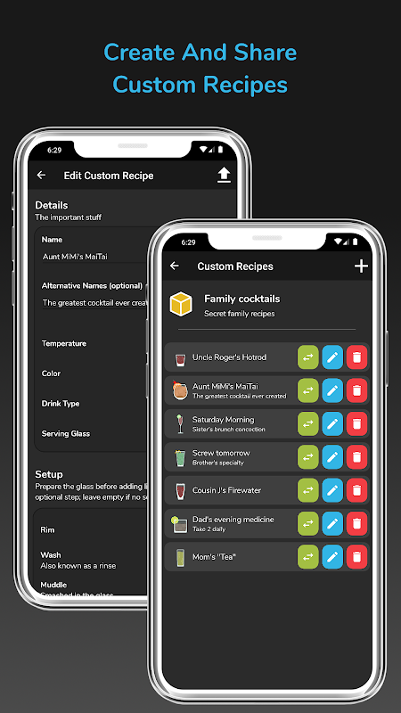 دنبال مکالمه نیستید؟ فقط به دنبال مرور هستید؟ BarBack با بیش از 100 مورد از محبوب ترین دستور العمل های نوشیدنی که براساس قدرت ، تعادل و مشخصات عطر و طعم رتبه بندی شده اند ، از قبل نصب شده است. ناگفته نماند ، BarBack از تعویض های پویا برای تغییر دستور العمل ها بر اساس آنچه در موجودی خود دارید استفاده می کند. فراتر از آن ، شما توانایی کنترل کتاب دستور العمل خود را با بسته های نوشیدنی قابل بارگیری دارید! چیزی برای همه و هر خلق و خوی وجود دارد ، بنابراین شما نمی خواهید برخی از این ایده ها را از دست بدهید!