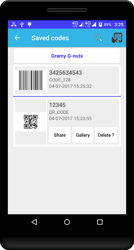 -You can always go to your saved codes, use the search to filter down the results and choose to share, view in gallery or delete from the saved codes.