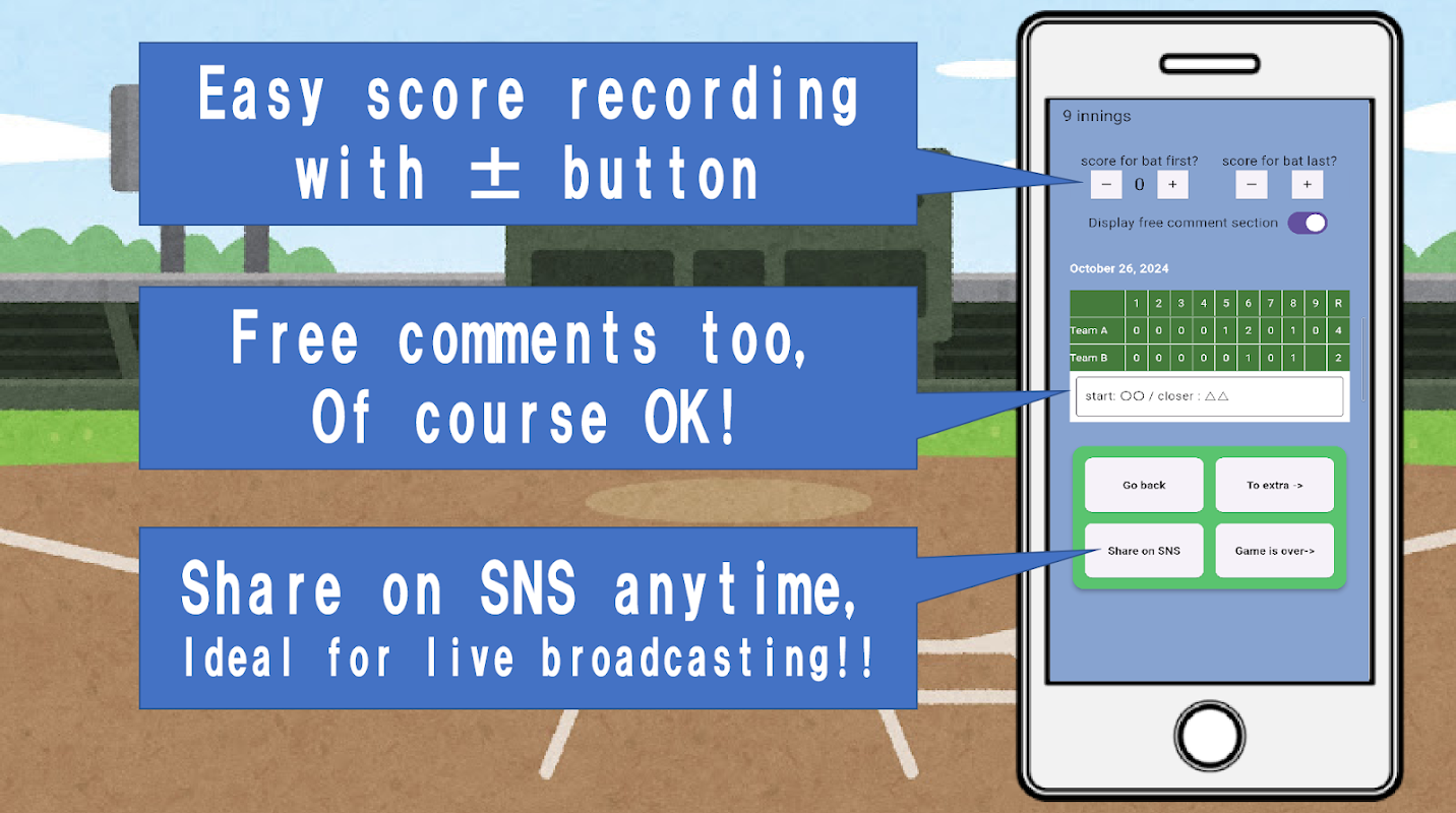 جدول امتیازات ساده بیسبال. تا ۱۸ اینینگ، اینینگها را دنبال کنید. بازیهای خود را به اشتراک بگذارید و ذخیره کنید.