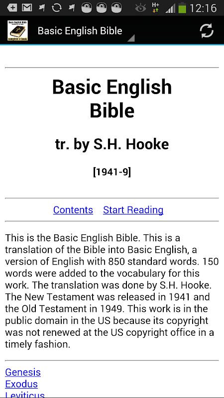 این برنامه شامل کتاب کامل انگلیسی پایه کتاب مقدس ترجمه شده توسط SH هوک در زبان انگلیسی.