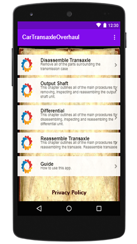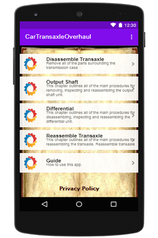 This Basic Overhaul Tran-axle app all of the main procedures for removing and