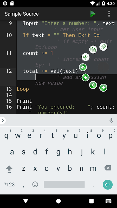 کدهای BASIC را در دستگاه خود بنویسید! ایده آل برای یادگیری و تست قطعات کد!