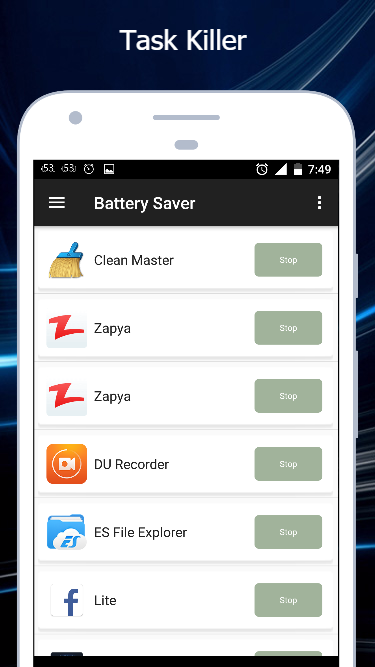Battery Saver app helps you close all services consuming battery on one screen. Or you can select the services you wish to close by your choice. It further contains battery health diagnostics to further checks battery health and finds battery health status is good, bad, cold, hot, high voltage etc.