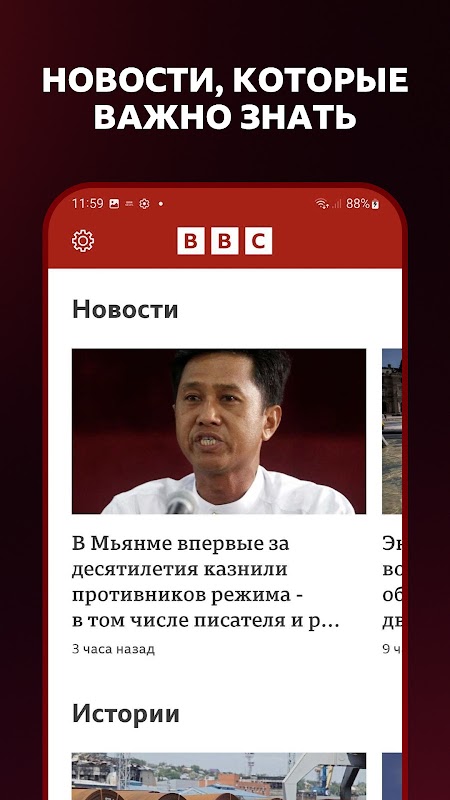 استفاده از برنامه سرویس خبری BBC News روسی آسان است.
