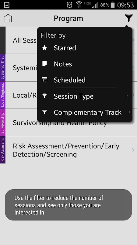The iPlanner, the official mobile app for the 2015 Breast Cancer Symposium, allows users to search or browse sessions or create a customized schedule. Attendees can also claim CME credits, provide feedback, and access other meeting materials from the app.