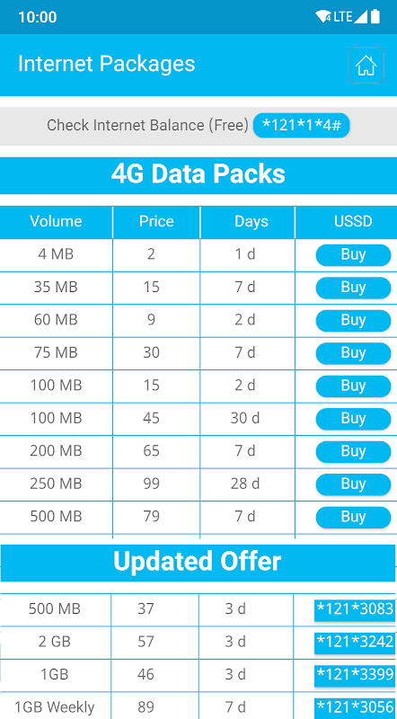 All Bangladeshi Mobile Operators' Package info within one app! Using this app, you can purchase your preferred packs very easily. And even, you can compare among available packs.