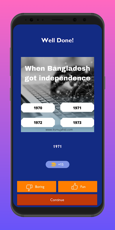 If you’re stuck in line at Starbucks, killing time during a meeting, or just bored with nothing better to do—pull out your phone or computer and play. Best of all, there are no losers in BD Knowledge – only winners! Every question has one correct answer, so everyone who plays can win. It’s challenging but not impossible. You will definitely learn something new by playing BD Knowledge.