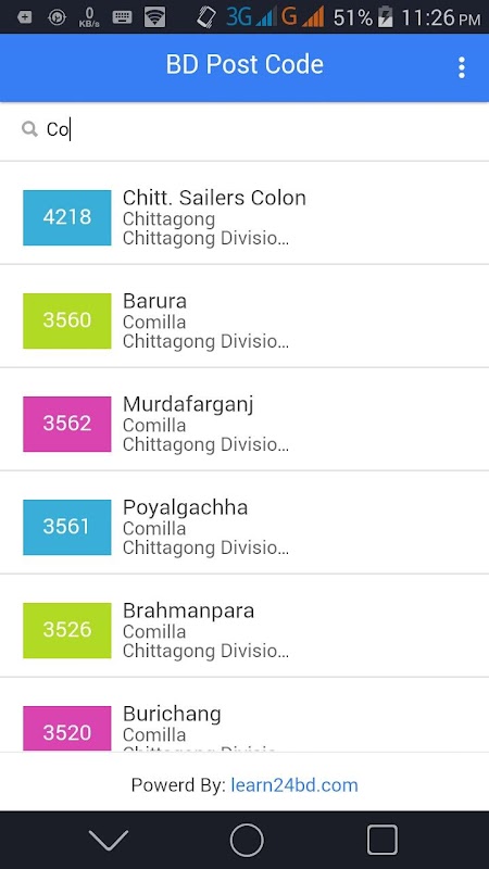 BD Post Code یک برنامه مفید آندروید برای یافتن هر کد پستی در بنگلادش است. شما می توانید کدپستی تقسیمات داکا ، چیتاگونگ ، باریشال ، خولنا ، میمنسینگ ، راجشاهی ، سیلهت ، رنگپور را پیدا کنید. جستجوی زنده برنامه به شما کمک می کند تا در یک ثانیه کد پستی مورد نظر خود را پیدا کنید.
