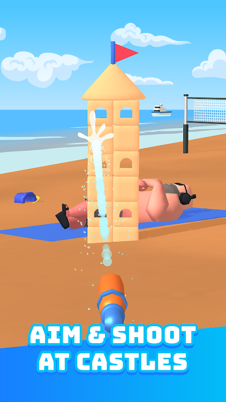 قلعه های شنی را هدف بگیرید و با تفنگ آب شلیک کنید.