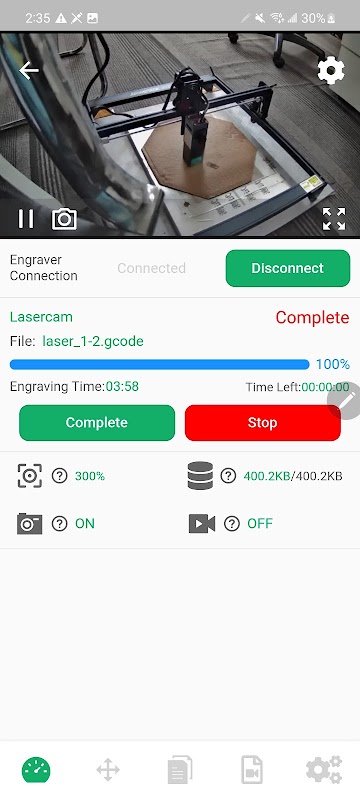 BeagleEngrave یک برنامه با رابط کاربری آسان و تمیز برای نظارت از راه دور ویدیوی حکاکی / برش شما و کنترل وضعیت حکاکی لیزری شما است. با BeagleEngrave، میتوانید ویدیوهای تایم لپس بسیار جالبی را بدون هیچ تنظیماتی بهطور خودکار تولید کنید. علاوه بر این، BeagleEngrave به شما اجازه می دهد:
