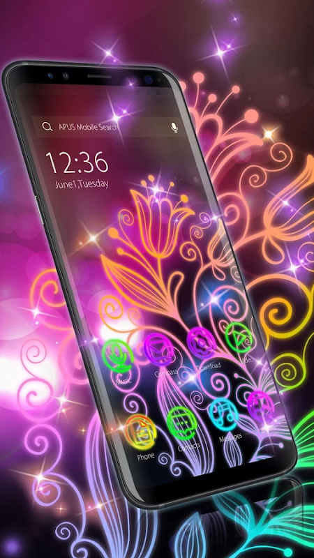 1. Beautiful neon colorful flowers theme & wallpaper is free, but only compatible with APUS Launcher. If you want to apply it, please install APUS Launcher on your Android phone. Or download new theme and APUS Launcher. When you install APUS Launcher, there are variety of themes in APUS theme & wallpaper shop, such as phonex, lovely unicorn, pink diamond mickey, Red heart, luxury, gold, business, black, simple, magic, comic, football, basketball, cricket, Valentine's Day, New Year, Halloween, Christmas, cute cat and dog, butterfly, dawn theme. Install APUS launcher to enjoy more themes.