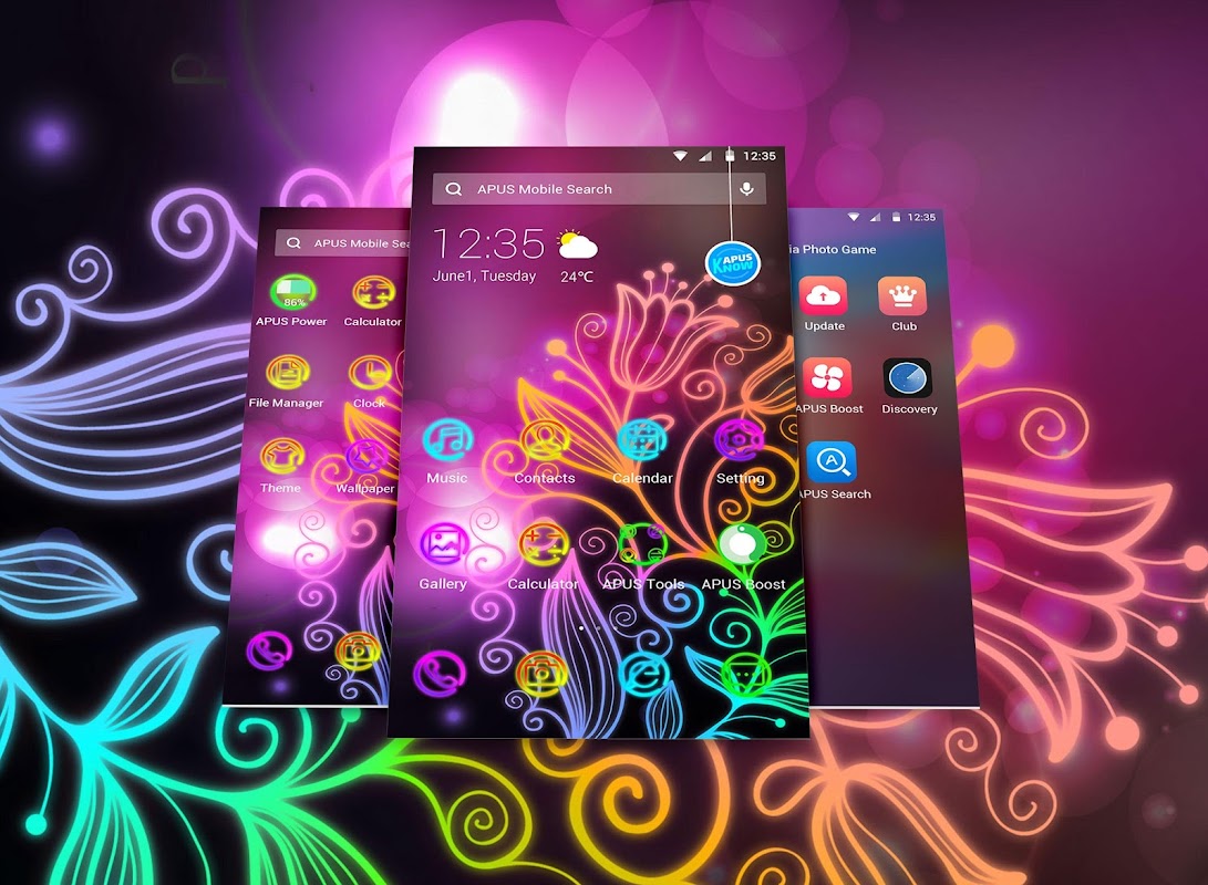 2. When you apply Beautiful neon colorful flowers theme & wallpaper with fantasy wallpaper, APUS Launcher will make your phone faster.