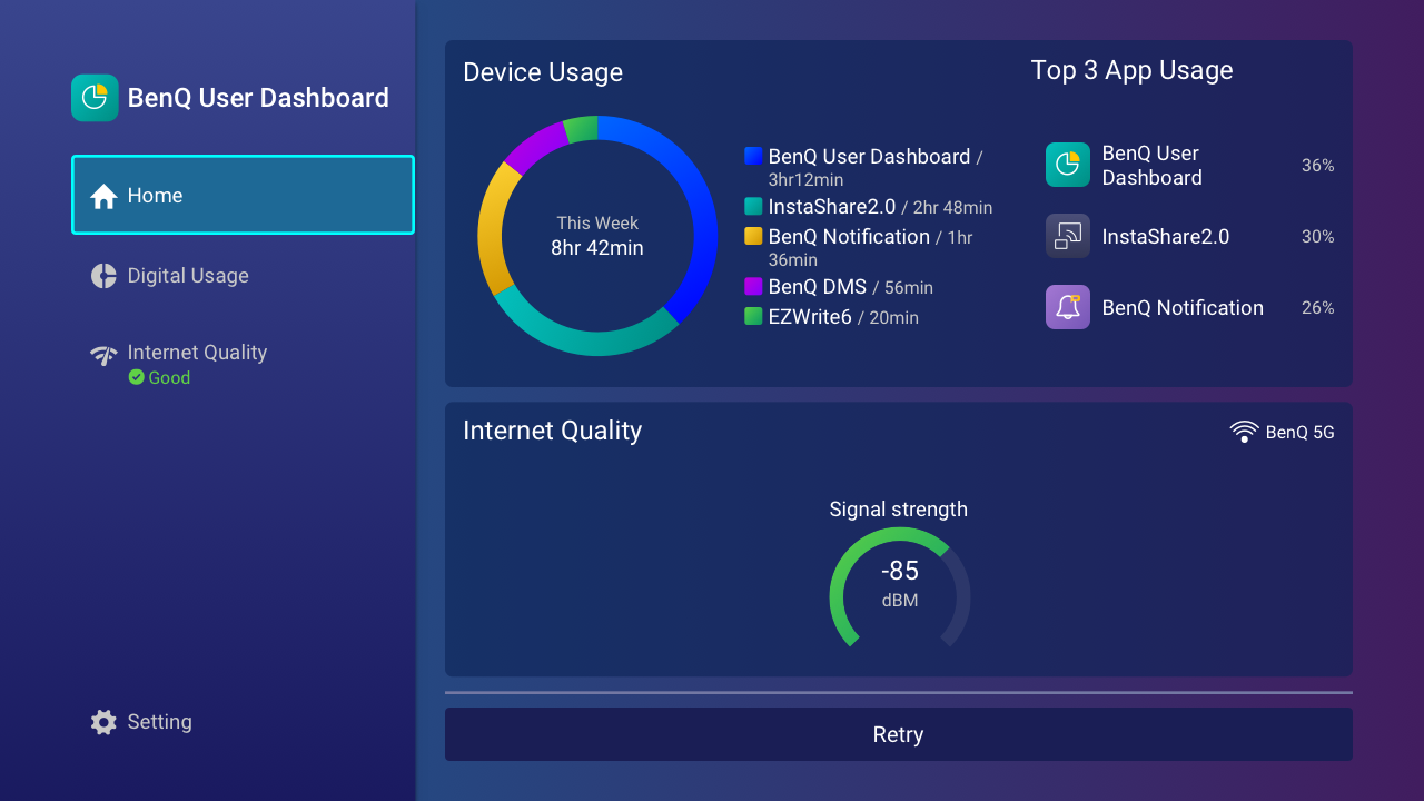 داشبورد کاربر BenQ فقط با پروژکتور BenQ با دانگل ATV BenQ (QS01 یا QS02) کار می کند.