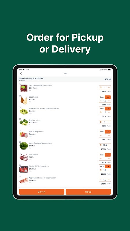 فقط برنامه Berkley Bowl را باز کنید و مواد غذایی خود را مستقیم به درب منزل تحویل دهید!