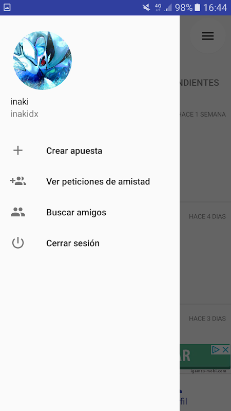 Aplicación para realizar apuestas y retos con otros usuarios.
